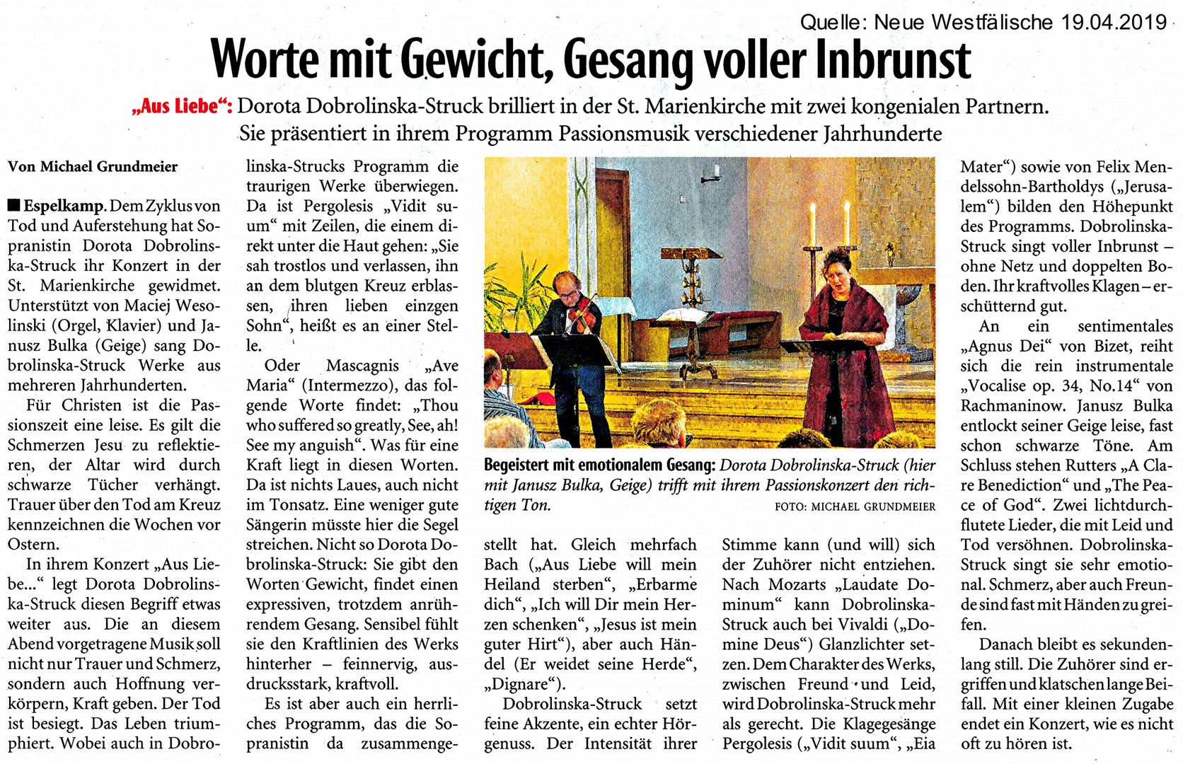 Prasa / TV - Sopran Dorota Dobrolinska-Struck